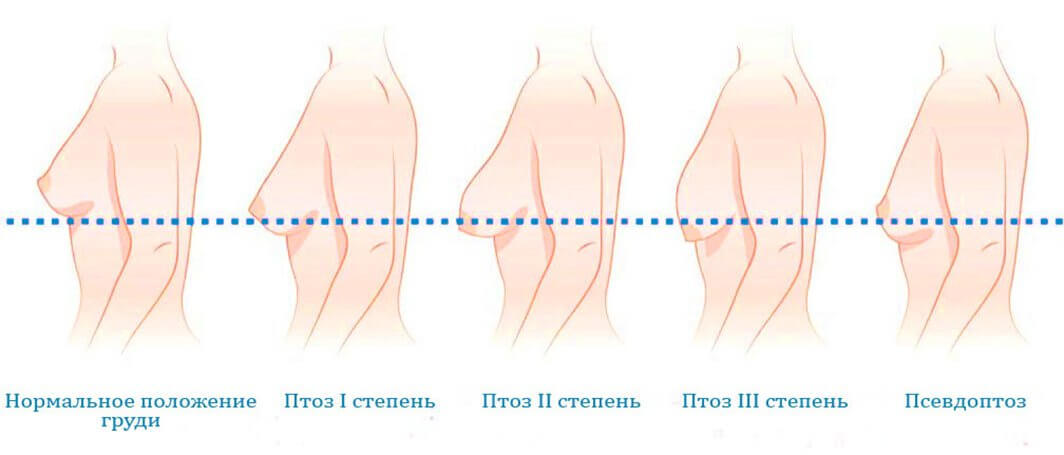 Степени опущения груди