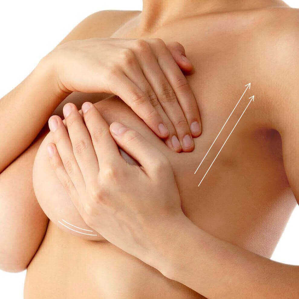 Сеансы массажа способствуют улучшению кровообращения и эластичности кожи, расслаблению мышц и позвоночника. Обычно он является подготовкой к нанесению кремов и масок. Чаще всего используются препараты на основе эластина, коллагена, альгинатов и водорослей (ламинарий). Последние считаются одним из наиболее популярных «натуральных» вариантов. Безоперационный метод подтяжки груди с помощью альгинатных масок часто предусматривает предварительную обработку специальными лифтинговыми кремами, коллагеном или эластином. Преимуществом всех этих препаратов является способность активно проникать в поры и стягивать обработанный участок кожи, что приводит к подтяжке.